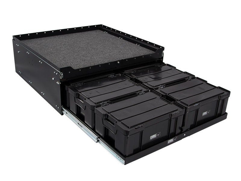 Daca Front Runner nu ofera un kit de sertar specific vehiculului tau, ia in considerare acest sistem de sertar „universal”. Deoarece aceste sertare se potrivesc doar in vehiculele de dimensiuni corespunzatoare, te rugam sa verifici specificatile pentru masuratorile exacte ale produsului.