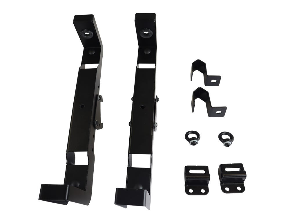 Folosiți aceste suporturi de prindere pentru a monta scara Front Runner Rack pe portbagajul de plafon Slimline II sau Slimpro Van.