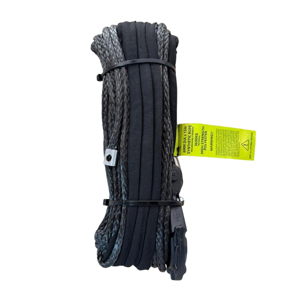 Această frânghie sintetică de troliu de 6mm x 15m este echipată cu un cârlig robust și este ideală pentru utilizarea în condiții off-road extreme. Cablul este acoperit cu un strat de poliuretan, care îmbunătățește stabilitatea formei și asigură o durată de viață mai lungă.