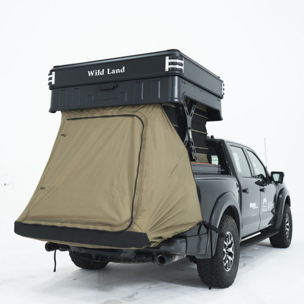Wingman de la Wild Land este cortul premium conceput special pentru autovehicule tip pick-up, care transformă bena într-un spațiu inteligent și multifuncțional. Printr-o singură apăsare pe telecomandă, cortul se ridică automat în două niveluri: jos rămâne zona de depozitare, iar sus se creează un spațiu de dormit confortabil și aerisit. Este soluția ideală pentru cei care își doresc libertate, confort și siguranță în fiecare aventură.