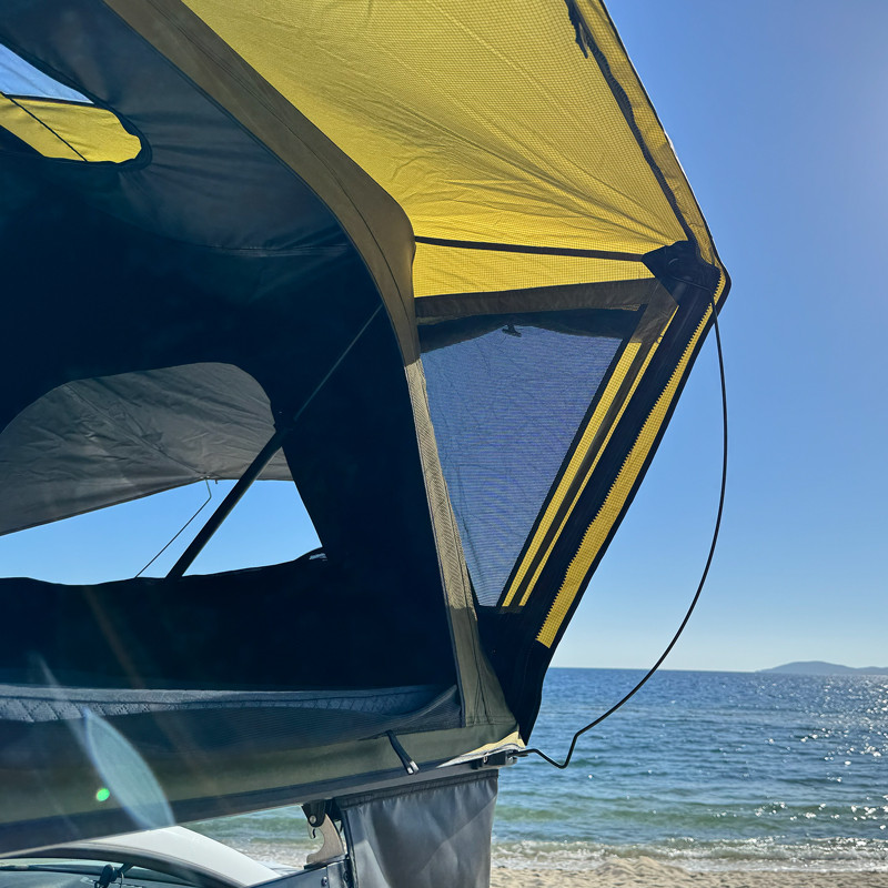 Ventilație & Încălzire: Ferestre laterale și superioare prevăzute cu plasă anti-insecte, pentru o circulație optimă a aerului. În plus, cortul este echipat cu un decupaj special conceput pentru instalarea unui încălzitor tip Webasto, oferind un confort sporit în serile reci.