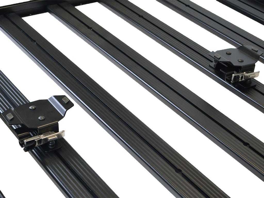 Fixare sigura in pozitie cu ajutorul a 2 cleme prevazute cu sistem de siguranta incorporat. Pentru un plus de siguranta, clemele pot fi incuiate folosind lacatul Front Runner (cod RRAC134, vandut separat).