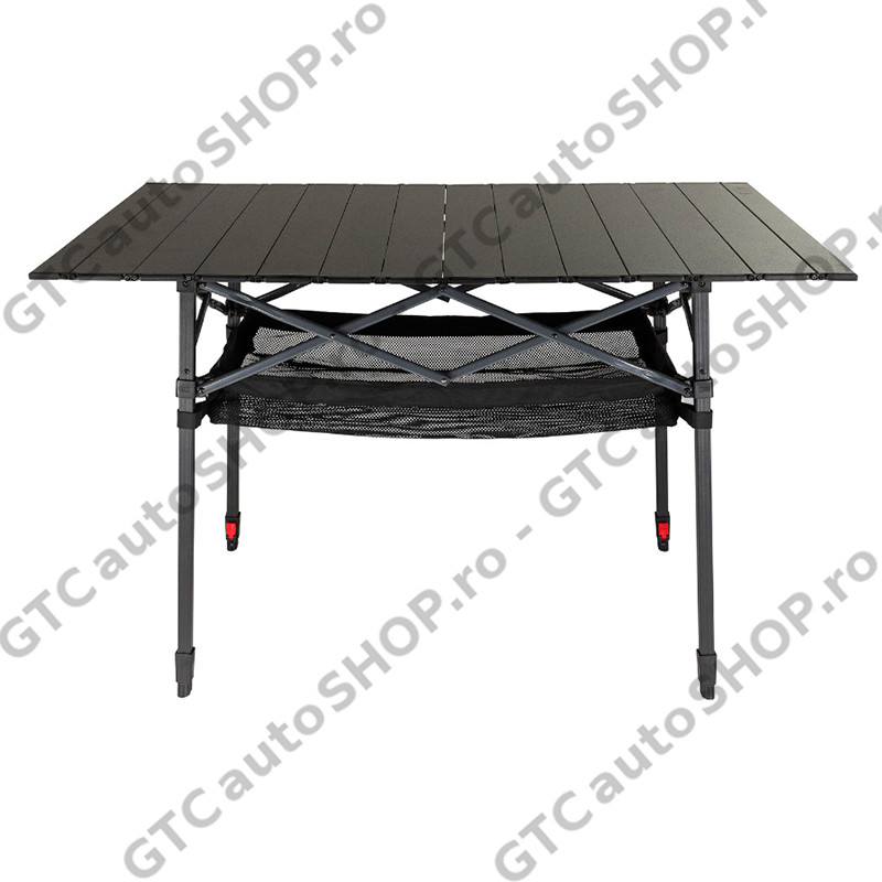 Masa se poate plia rapid, si depozita in geanta de transport, confectionata din poliester 600D, si care are divizoare integrate, oferind un compartiment separat pentru blat.