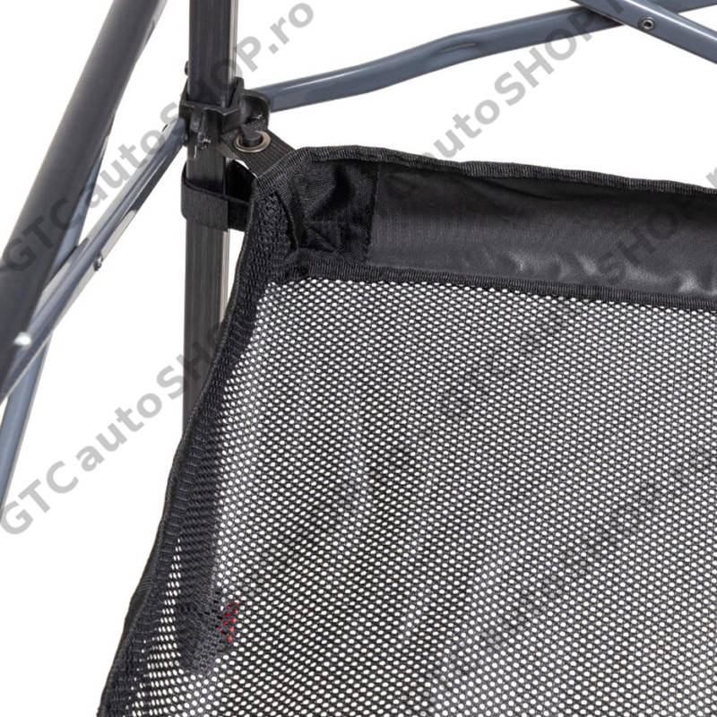 Picioarele dispun deasemenea si de carlige pentru plasa de depozitare inferioara (inclusa) si care ofera loc de depozitare suplimentar, usor de accesat.