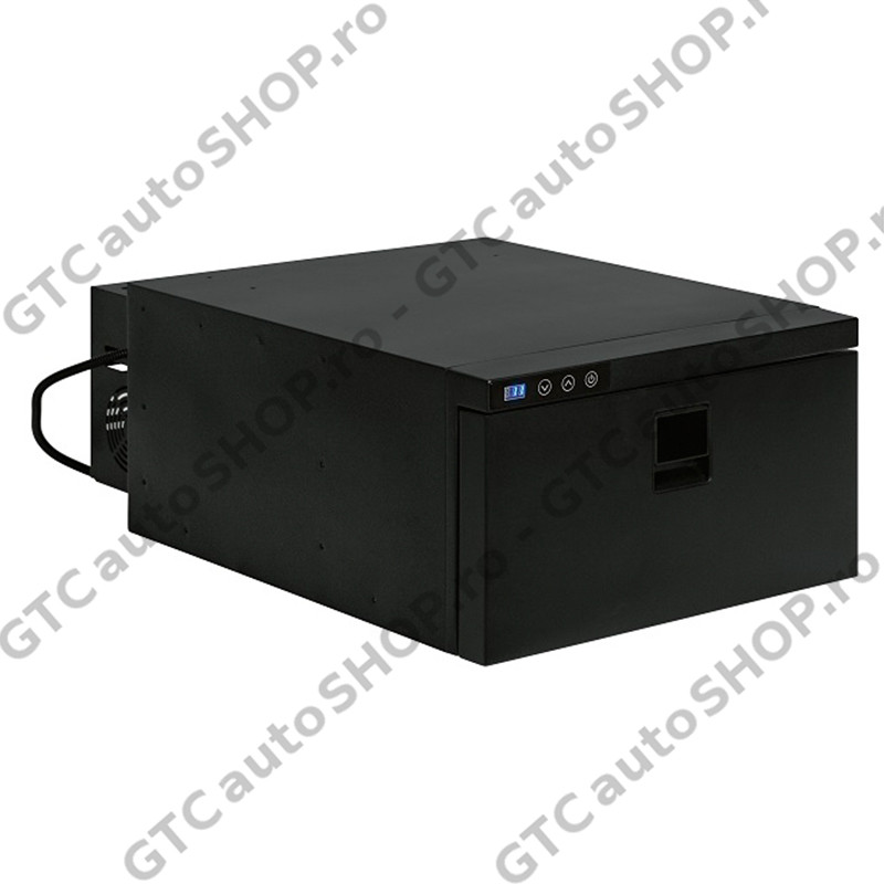 Frigiderul are capacitate de 30 litri si este dotat cu compresor electric ventilat Secop. Se poate monta in orice autovehicul (autoturism, SUV, microbuz, camion, etc.) deoarece se alimenteaza la 12V cat si la 24V. Pe langa forma sa compacta de tip sertar, compresorul se poate detasa din spatele frigiderului astfel incat sa fie montat in alta parte. Frigiderul poate fi montat in bena masinii, in portbagaj, pe bancheta spate a unui autoturism, chiar si in sistemul de sertare a unui pick-up/SUV.