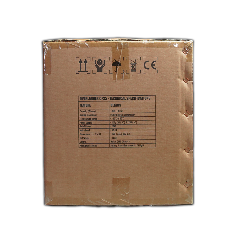 Frigiderul auto Overlanding 35L, cu compresor DC, asigură o răcire eficientă între -20°C și 20°C. Se alimentează la 12/24V sau 220V și are o capacitate generoasă de 35L. Funcționează silențios (<50dB) cu o putere de 50W și dimensiuni compacte (690x345x382mm), fiind ușor de integrat în mașină sau la camping. Designul gri deschis adaugă un plus de eleganță.