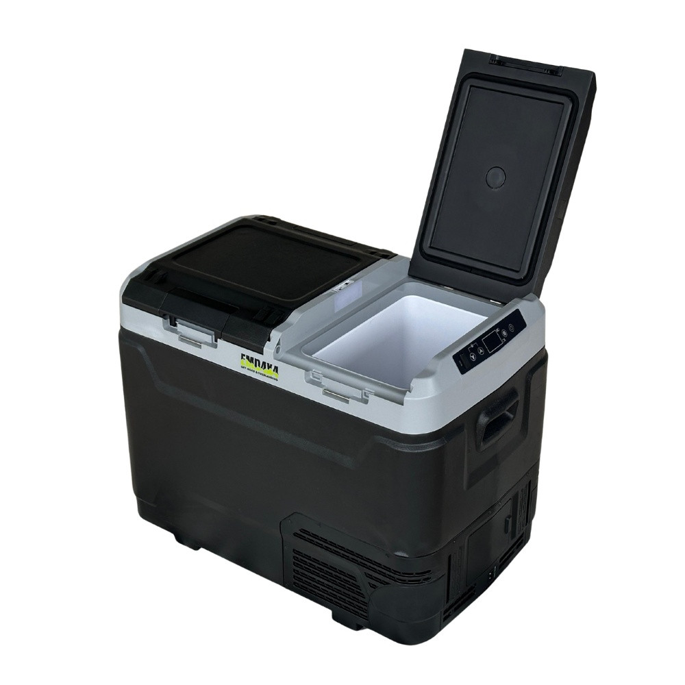 Frigider auto portabil EMD4X4 cu compresor, Bluetooth, alimentare 12V/24V/220V, control digital, temperatură reglabilă -20°C – +20°C, ideal pentru mașină, camping, off-road, pescuit, rulote