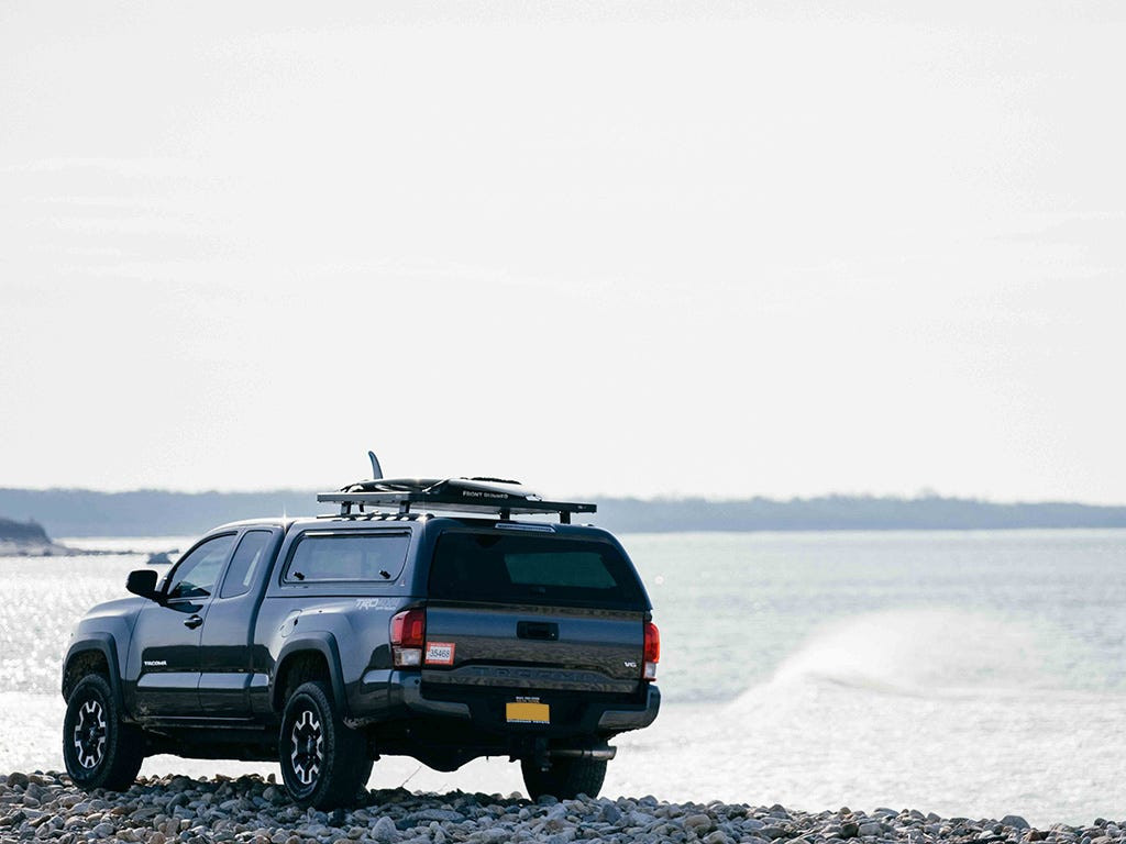 Acest portbagaj este destinat hardtopurilor de benă/camper shell-urilor/capacelor și remorcilor care au dimensiuni ale acoperișului de cel mult aproximativ 1475mm/58.1'' (W) x 752mm/29.6'' (L). Platforma Slimline II și cele patru (4) picioare incluse se montează pe șina OEM / montată din fabrică a hardtopului/carcasei sau remorcii dvs. Acest kit înalt oferă spațiu pentru montarea meselor Front Runner sau a altor accesorii compatibile sub portbagaj. NOTĂ: Pot fi necesare elemente de fixare suplimentare pentru montarea pe șinele OEM / furnizate din fabrică.