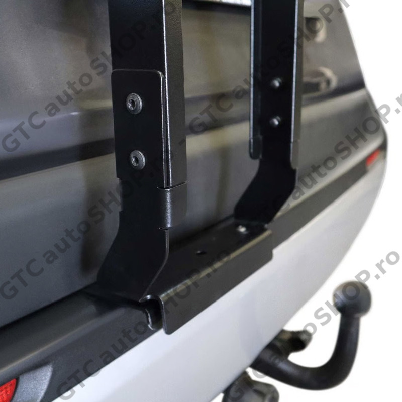 Se fixeaza in punctul de prindere al balamalei din fabrica si la baza usii din spate (gaurire necesara la baza).