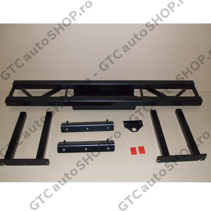Sistemul este compus din suportul metalic fixat de marginile benei si troliul Warn Works 2000, actionat cu telecomanda.