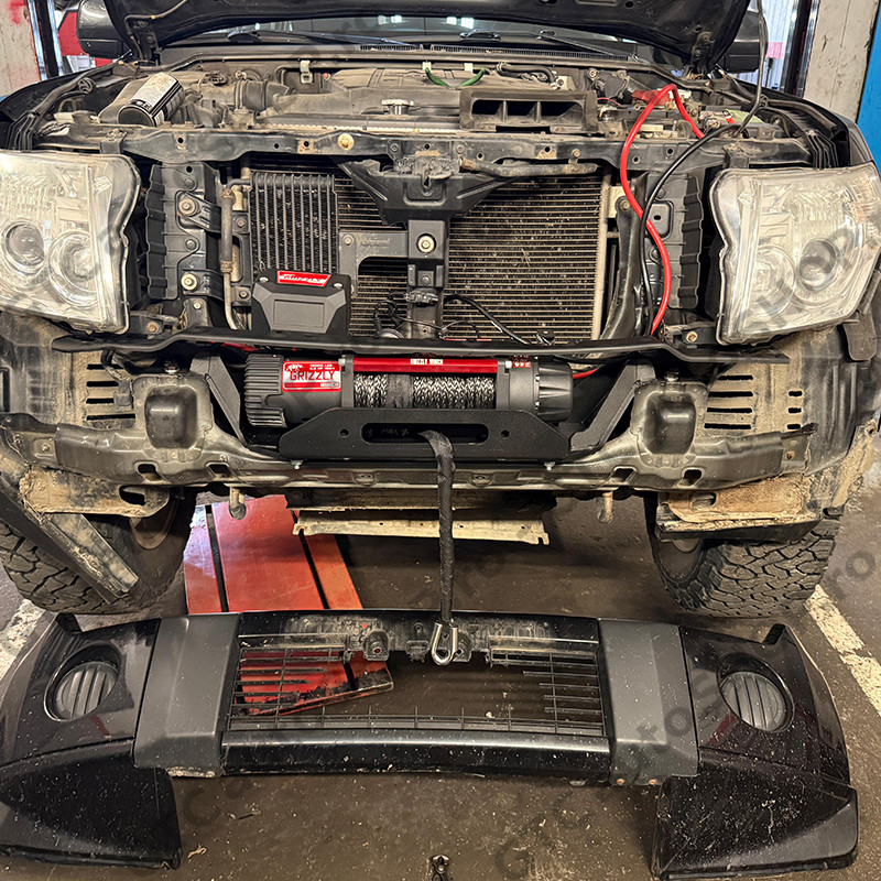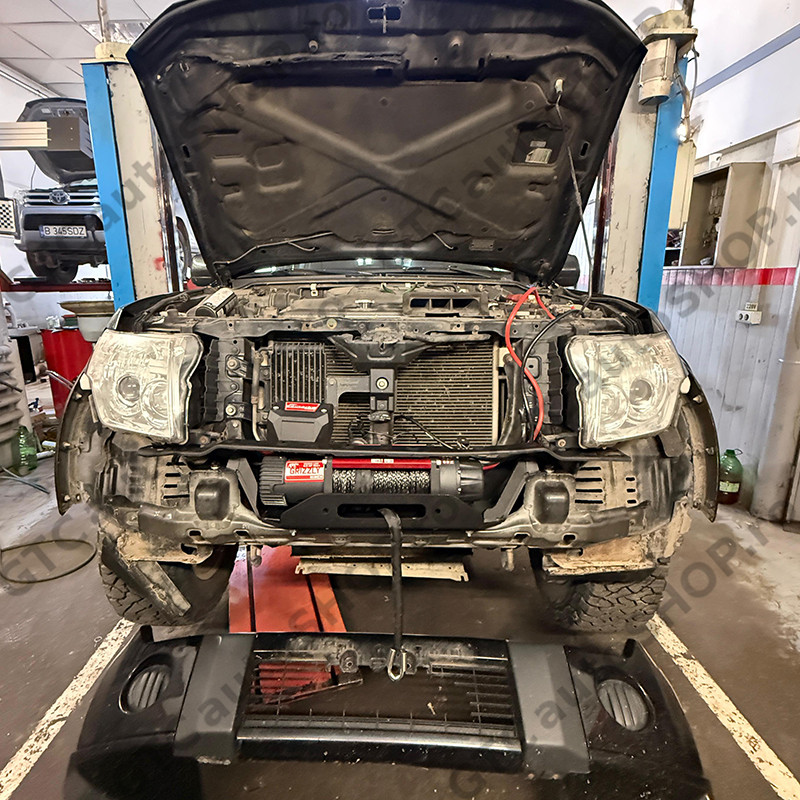 Suport de troliu More 4x4 dedicat Mitsubishi Pajero MK4 V80 fabricatie dupa 2007, permite montarea discreta a troliului, ascuns in bara originala a masinii