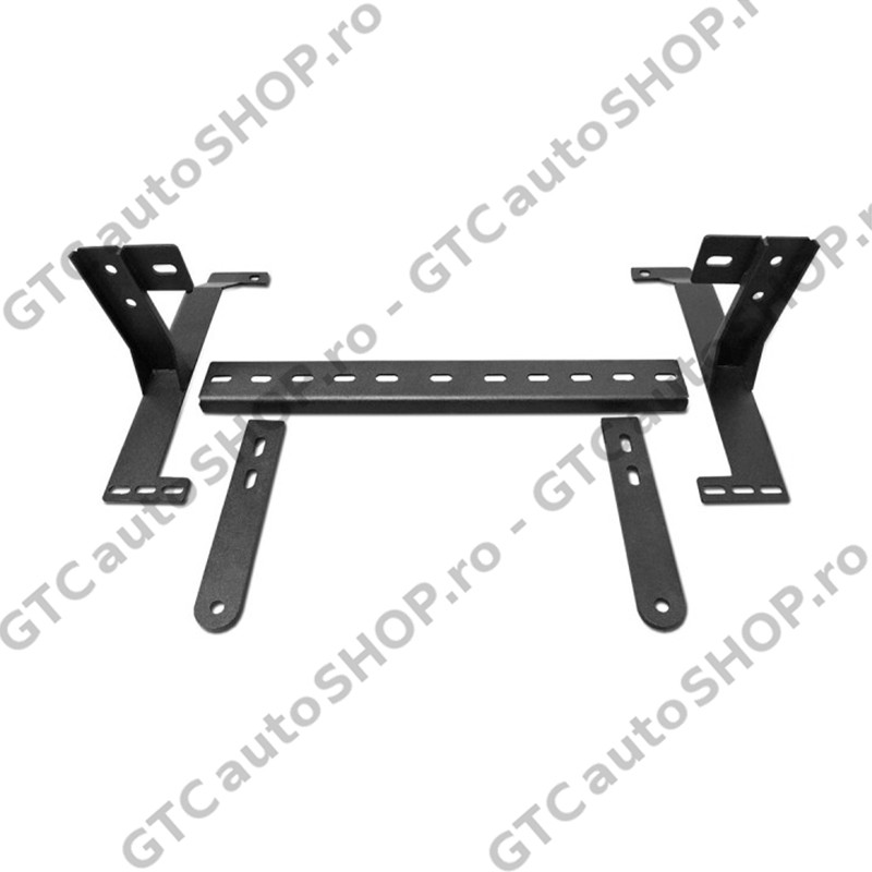 Suportul de lampa permite montarea iluminatului in spatele grilei sau, dupa strangerea elementelor externe, si in afara, deasupra barei de protectie.