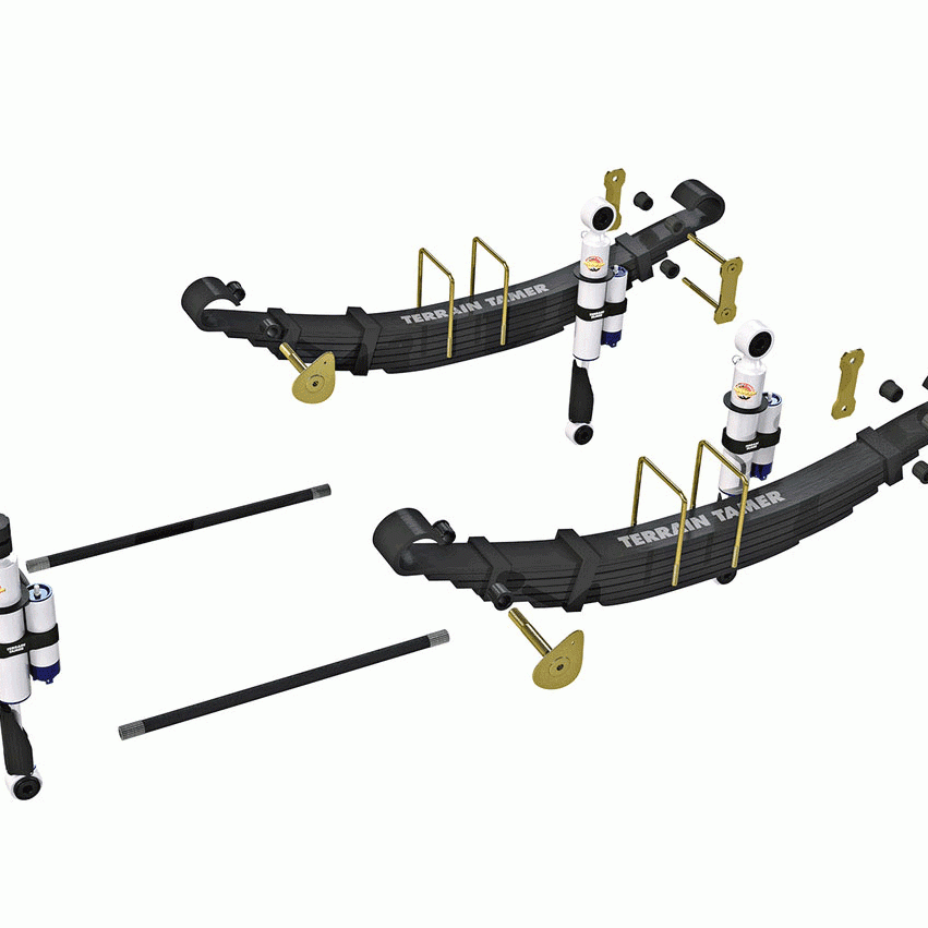 Arcurile lamelare cu foi Terrain Tamer sunt de calitate foarte buna si sunt proiectate sa lucreze optim cu restul componentelor kiturilor de suspensie Terrain Tamer. Accesorii complementare arcuri foi: bucsi, bride U si cercei/pini gresabili. Arcurile lamelare au pastile antifrictiune intre foi, din poliuretan, pentru a reduce zgomotul ce poate apare in functionare.