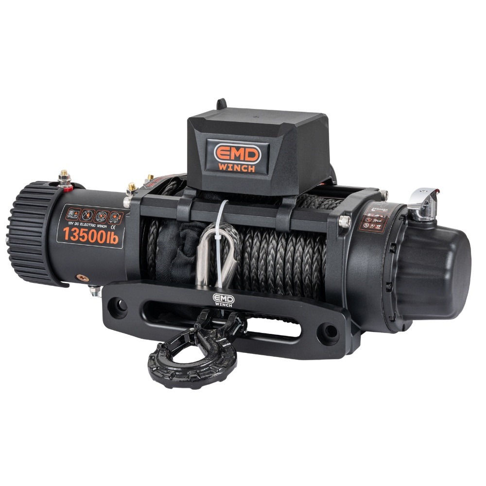 Troliu electric auto EMD Winch 13500lbs (6123kg), 12V, cablu sintetic, 25m, raport 150:1