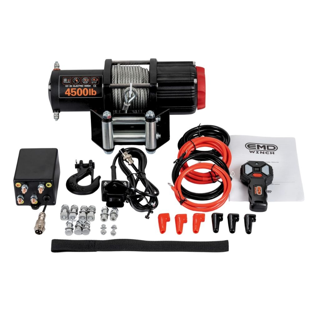Troliu electric EMD Winch 4500lbs (2041kg), 12V, cablu otel 15m, raport 166:1