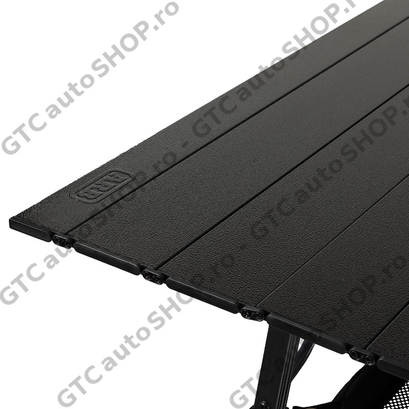 Masa se poate plia rapid, si depozita in geanta de transport, confectionata din poliester 600D, si care are divizoare integrate, oferind un compartiment separat pentru blat.