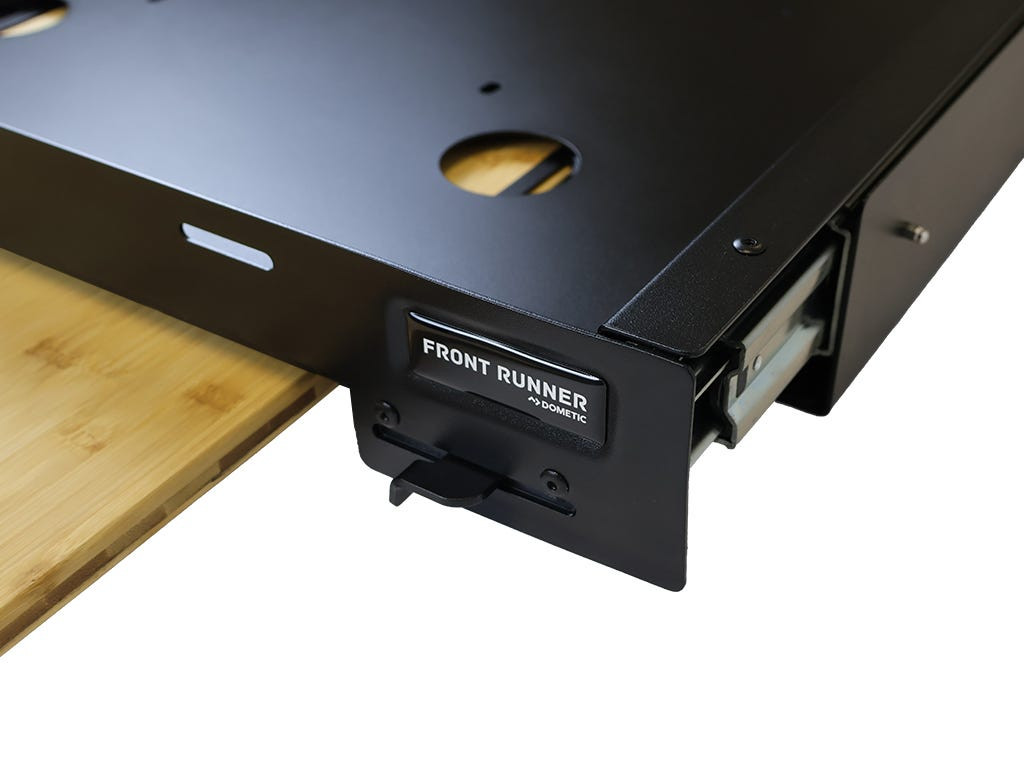 Sistem de culisare de la Front Runner ce permite montarea unui frigider (cu capacitate de 95l-100l) sau a unor cutii (Cub Pack, Wolf Pack etc.) ori a unor echipamente grele.