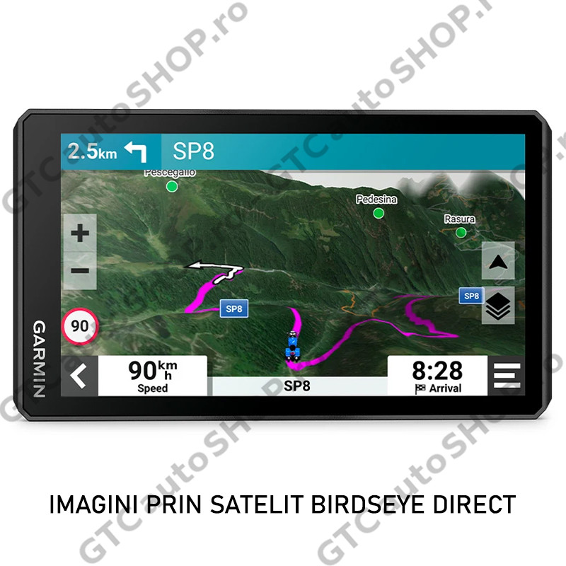 Imagini prin satelit Birdseye Direct - Utilizează imaginile prin satelit din întreaga lume pentru a te ajuta să navighezi. Descarcă hărţile direct pe dispozitivul tău prin Wi-Fi. Nu este necesar un abonament anual.