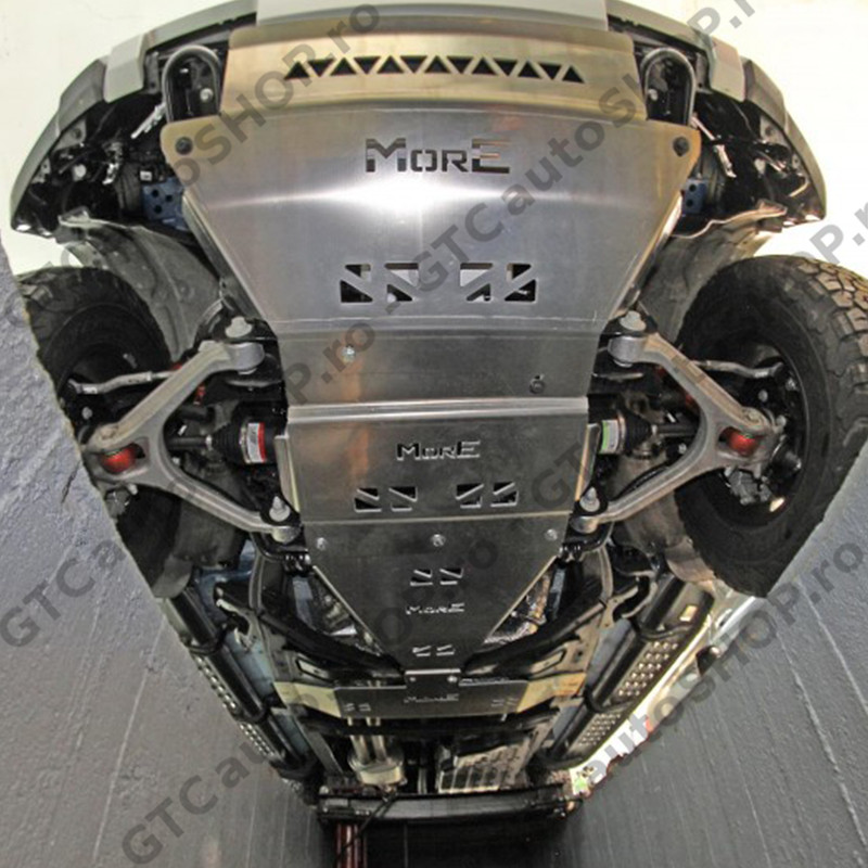 Scuturile sunt dedicate Ford Ranger Raptor, productie 2023+ , motorizare diesel 2.0L, cutie automata. Setul contine scut radiator + directie, scut motor + punte fata, scut cutie viteze si scut cutie transfer. Acestea se pot cumpara si individual.