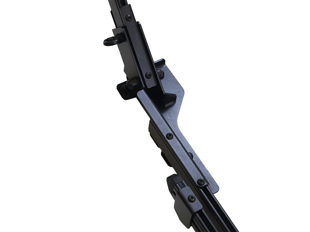 Acest suport pentru hamac se fixează pe portbagajul plafon cu brațe care se rabatează spre exterior și se blochează în poziție cu hardware-ul furnizat.