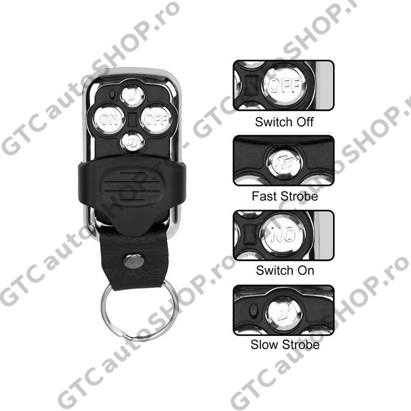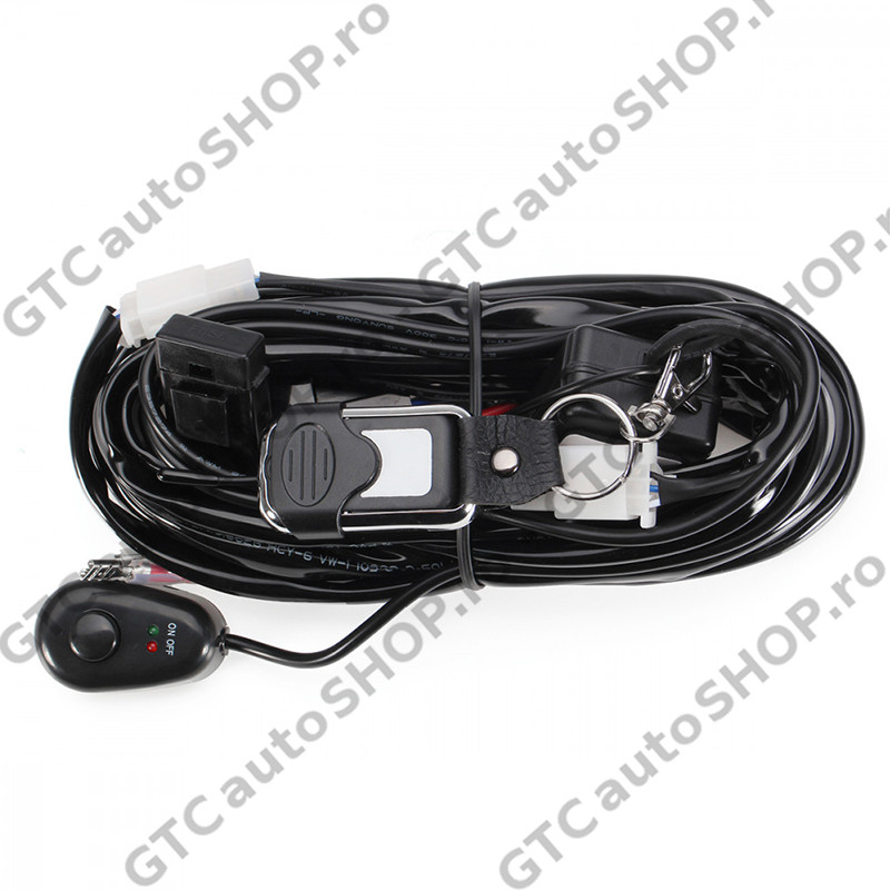 Cablaj wireless cu telecomanda, buton ON/OFF, releu si siguranta pentru pornirea/oprirea a unuia sau a mai multor proiectoare/led bar cu puterea totala insumata de maxim 288W.