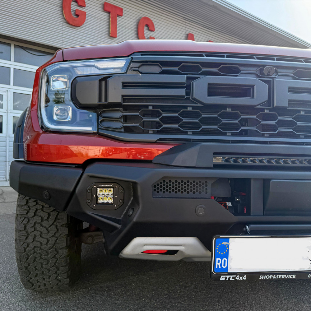 Această bară este compatibilă cu Ford Ranger Raptor 2022+ și se montează fără modificări ale caroseriei, folosind punctele originale de prindere ale vehiculului. Este concepută special pentru a integra perfect senzorii de parcare, radarul frontal și camera OEM.