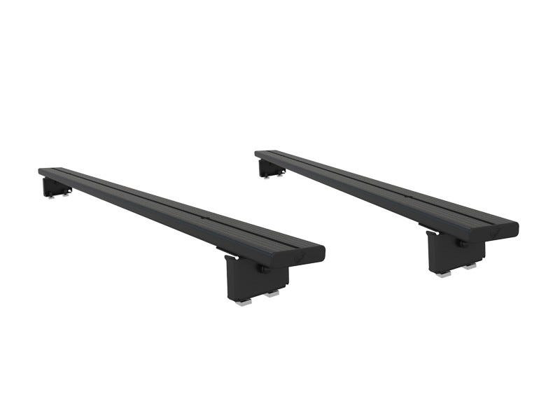 Un set de bare transversale cu picioare montate pe șine, utilizat pentru transportul echipamentelor pe plafonul vehiculului dvs. atunci când nu este necesar un portbagaj plafon Front Runner complet.