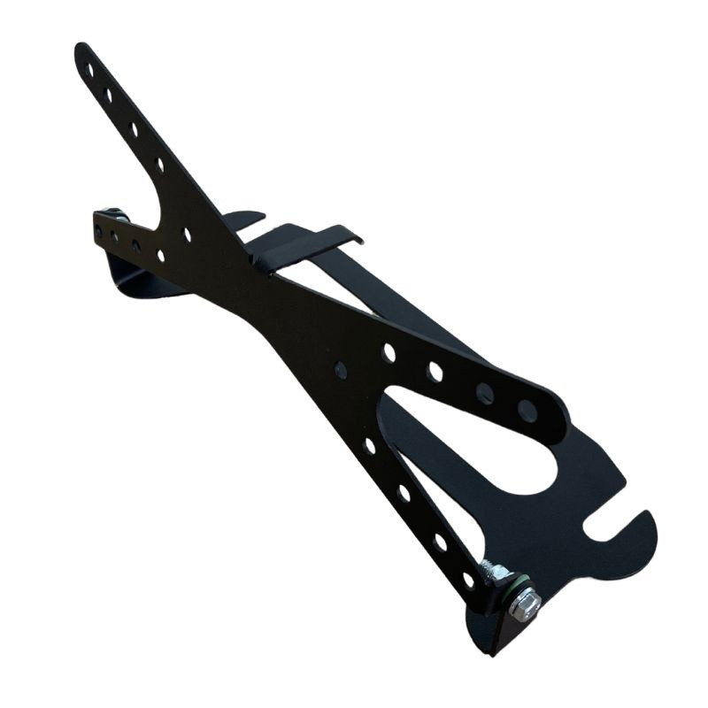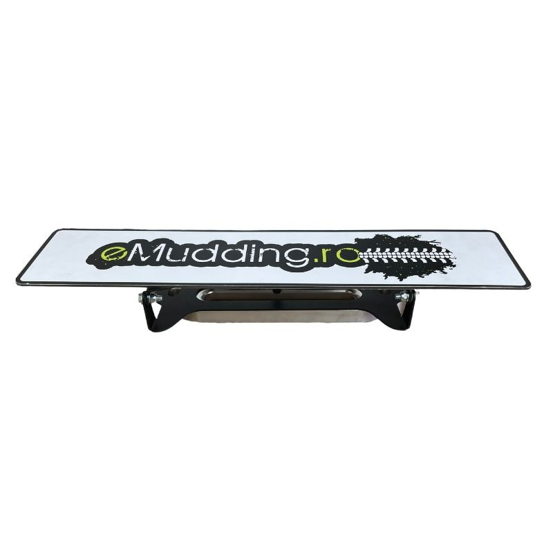 Acest suport rabatabil permite montarea plăcii de înmatriculare deasupra fantei troliului, asigurând o poziționare corectă și vizibilă a acesteia.