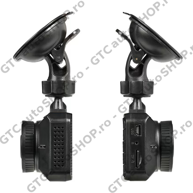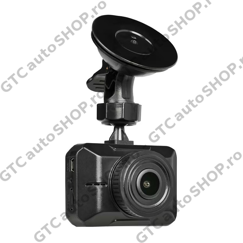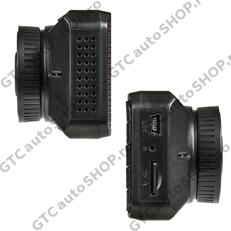 Pachetul include camera frontala cu suport pentru parbriz si cablu de alimentare.