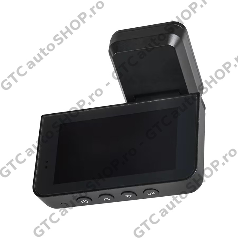 Aceasta camera este potrivita atat pentru vehicule standard, cat si comerciale, datorita compatibilitatii cu tensiuni de 12/24V. Conectarea plug and play prin priza de 12V simplifica instalarea, permitand configurarea rapida fara cabluri complicate. Suporta carduri SD de pana la 128GB, oferind suficient spatiu pentru sesiuni de inregistrare extinse. Senzorul G salveaza automat fisierele in caz de coliziune, asigurand pastrarea inregistrarilor importante. Modul de parcare inregistreaza video timp de pana la 30 de secunde cand vehiculul este stationat.