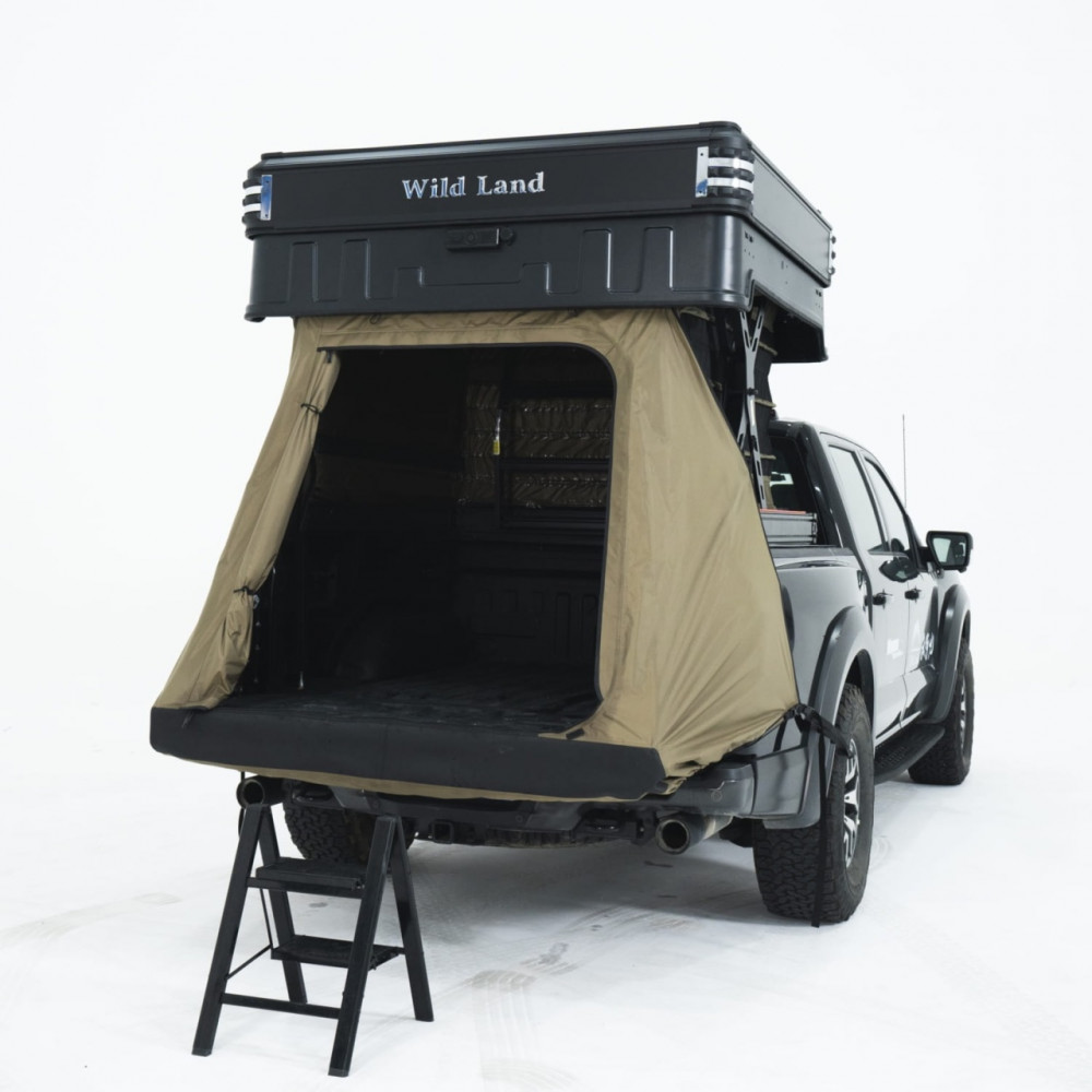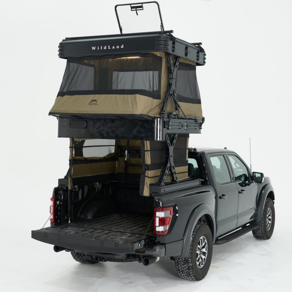 Wingman de la Wild Land este cortul premium conceput special pentru autovehicule tip pick-up, care transformă bena într-un spațiu inteligent și multifuncțional. Printr-o singură apăsare pe telecomandă, cortul se ridică automat în două niveluri: jos rămâne zona de depozitare, iar sus se creează un spațiu de dormit confortabil și aerisit. Este soluția ideală pentru cei care își doresc libertate, confort și siguranță în fiecare aventură.