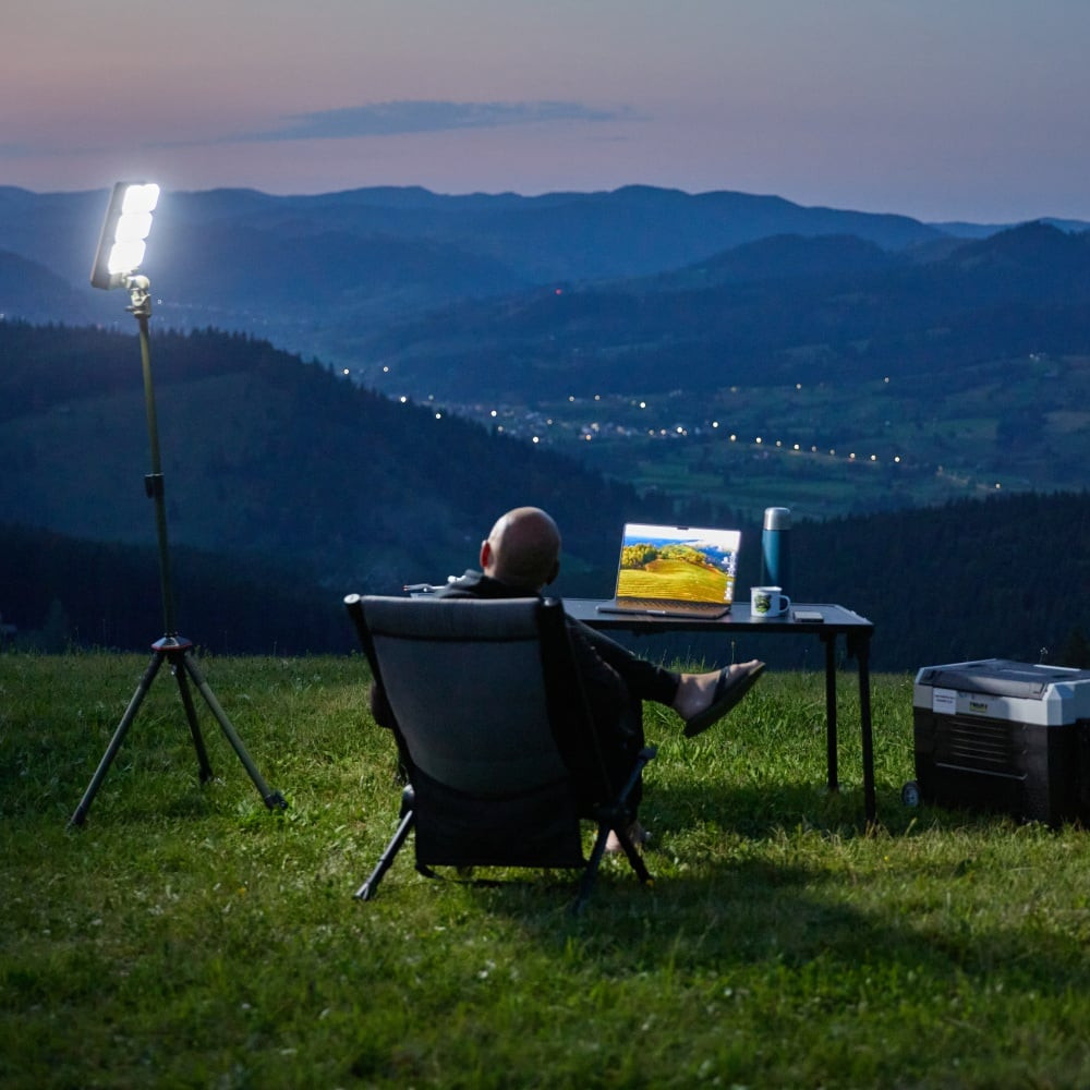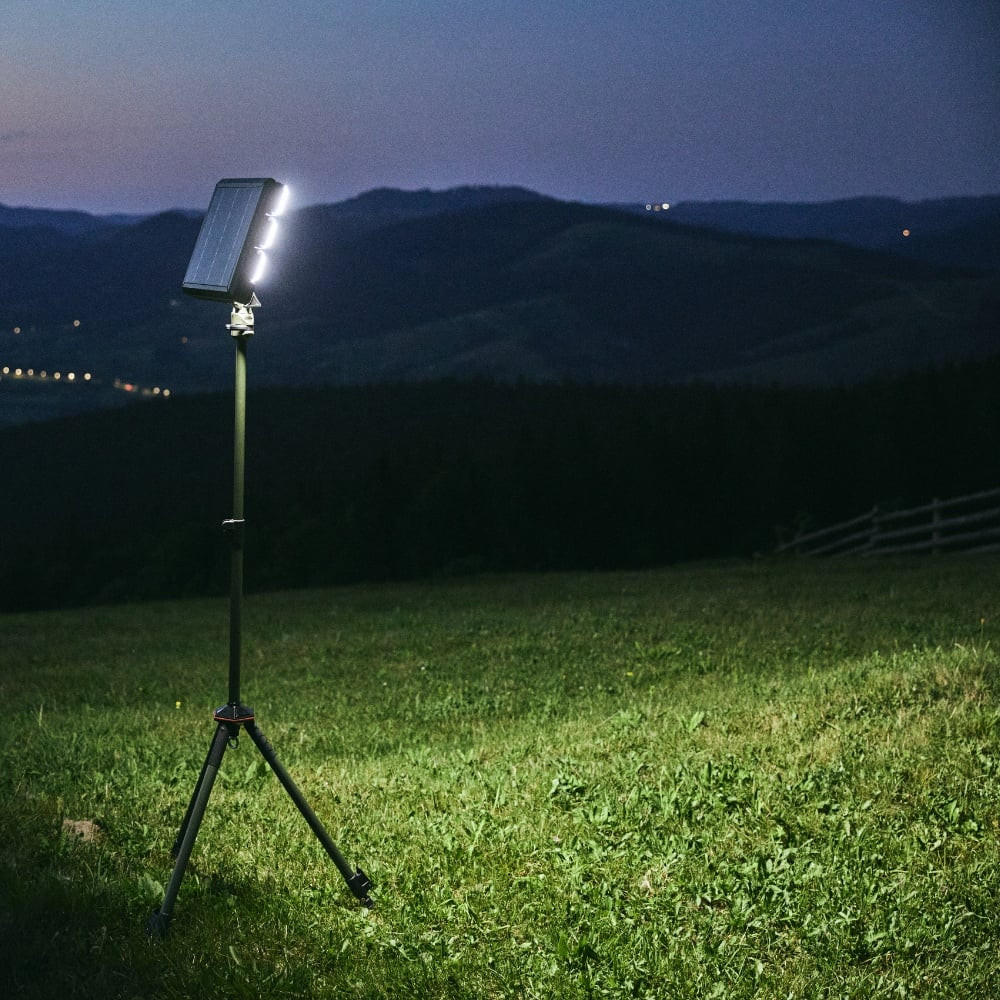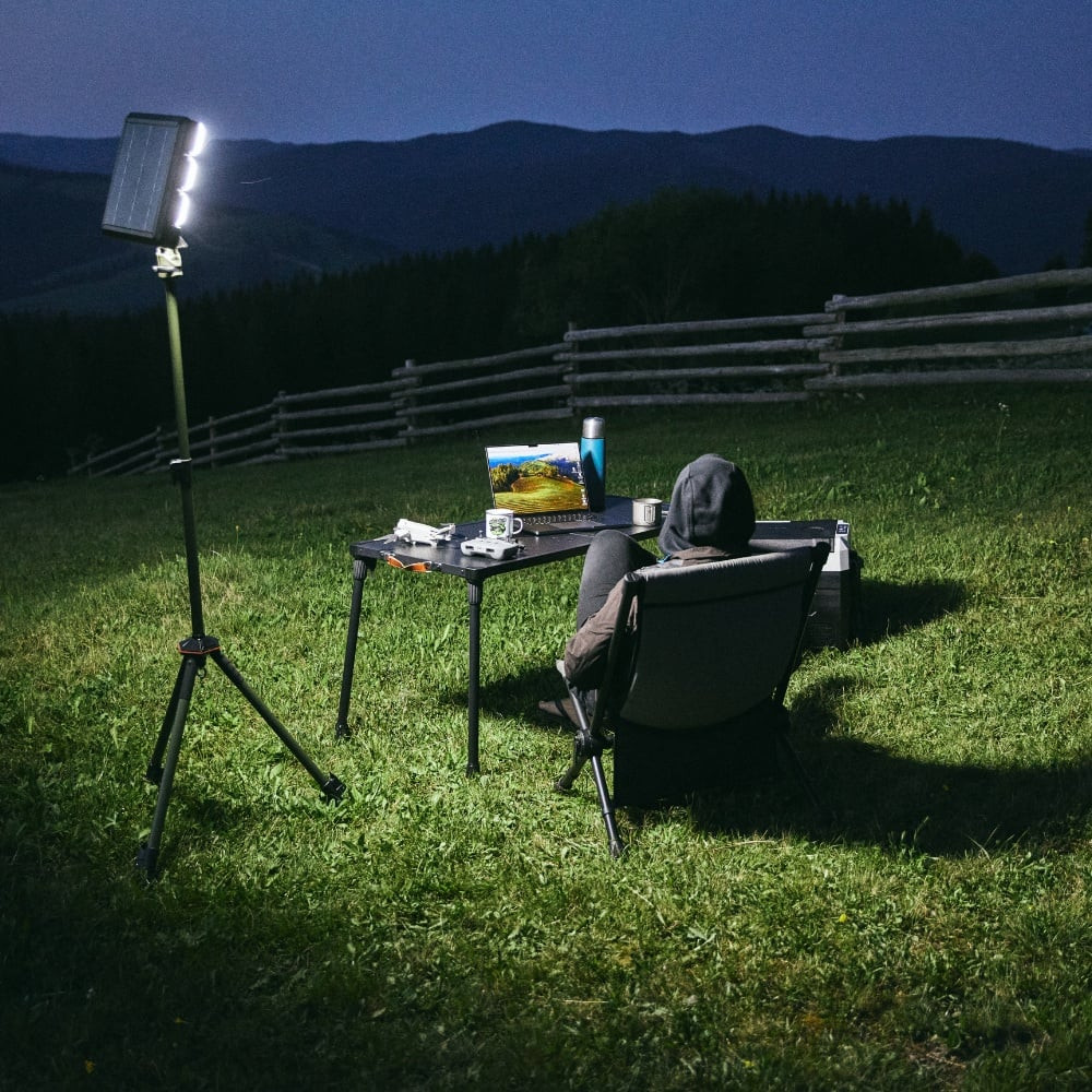 Această lampă de camping cu flux luminos ridicat oferă până la 3500 lumeni și o autonomie între 3 și 12 ore, în funcție de setările de luminozitate. Suportă mai multe opțiuni de încărcare: fie prin panoul solar integrat în partea superioară, fie prin portul DC 12V. Astfel, reduce îngrijorările legate de autonomia iluminatului.
