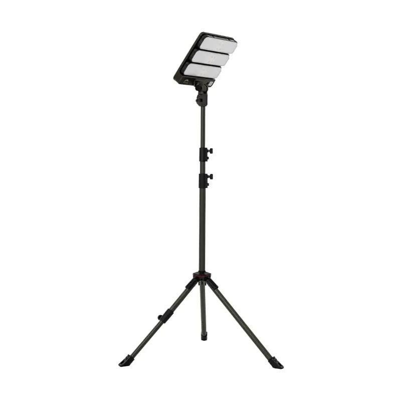 Montarea este simplă. Cu ajutorul trepiedului telescopic, poți ajusta înălțimea între 1.2 m și 2.2 m, precum și unghiul de iluminare.