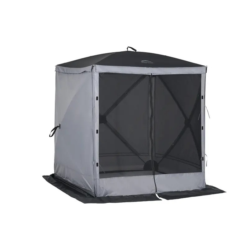 Cort de camping Wild Land cu structură tip hub și design modular – ideal pentru activități în aer liber alături de familie și prieteni. Poate fi utilizat ca foișor deschis, cu patru pereți laterali din plasă pentru ventilație excelentă, sau se pot adăuga panouri detașabile pentru intimitate sporită.