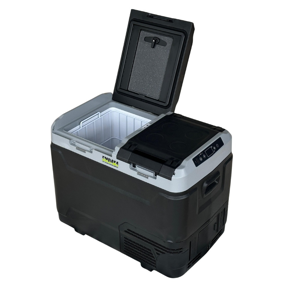Frigider auto portabil EMD4X4 cu compresor, Bluetooth, alimentare 12V/24V/220V, control digital, temperatură reglabilă -20°C – +20°C, ideal pentru mașină, camping, off-road, pescuit, rulote