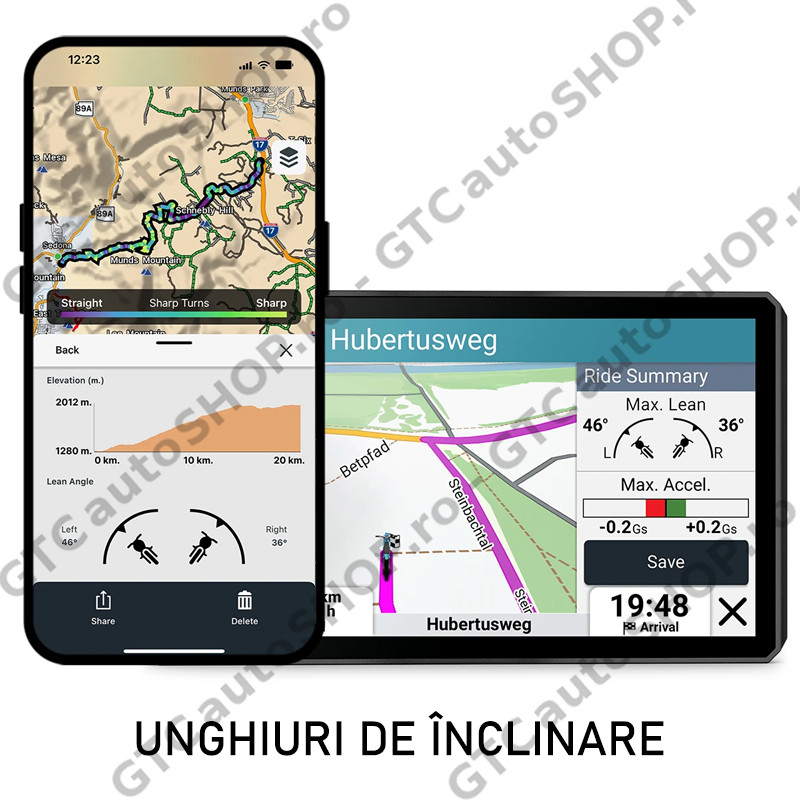 Alerte pentru motociclist - Primești alerte pentru pericole, cum ar fi curbe strânse viitoare, modificări ale vitezei și multe altele.