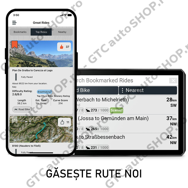 Garmin Adventurous Routing - Drumurile drepte sunt plictisitoare. Găseşte cele mai interesante rute cu dealuri, curbe şi peisaje şi alege dintre cele 4 niveluri de dificultate.