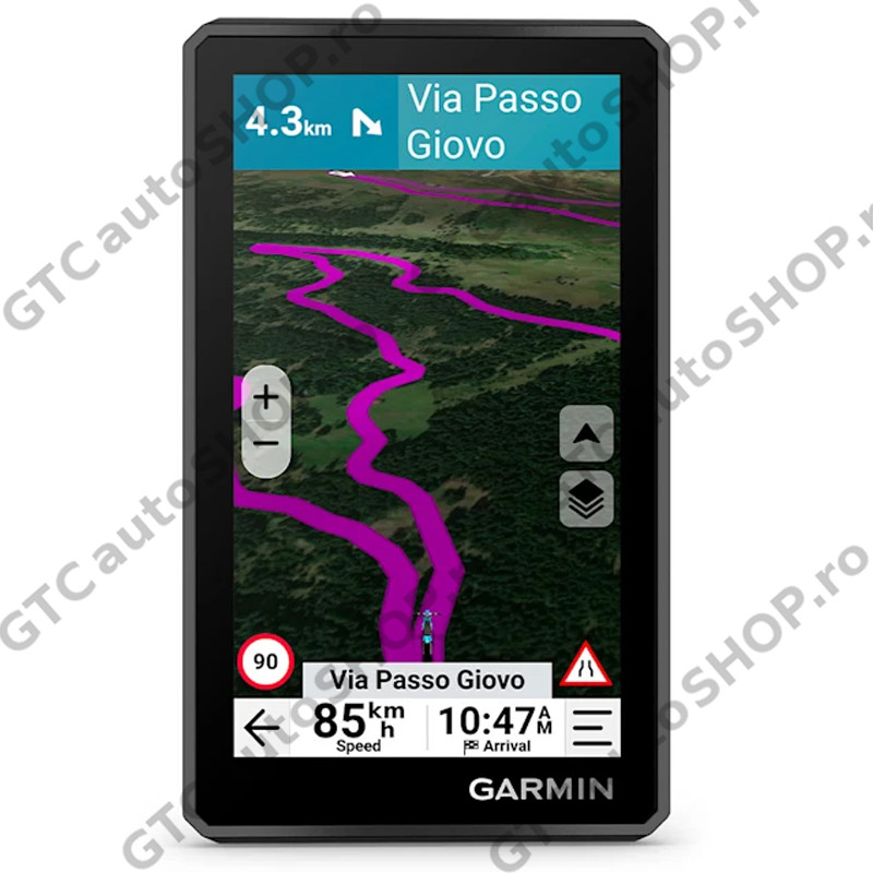 Planificator de rute vizuale - Planifică o rută personalizată pe dispozitiv sau utilizează aplicația Tread pe un smartphone compatibil. Selectează funcții de rutare personalizată, precum curbe, dealuri sau drumuri panoramice. De asemenea, poți importa propria rută folosind fișiere GPX, KML sau KMZ.