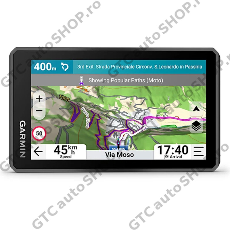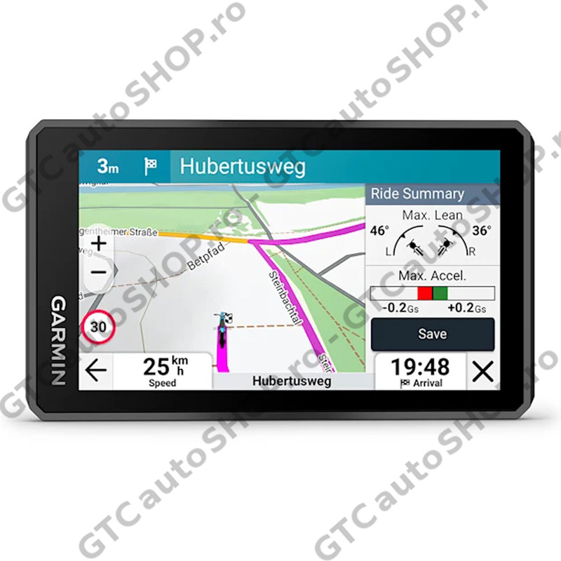 - Funcţii motocicletă: Comenzi pentru muzică şi media de pe smartphone sau playerul MP3, vizibil în lumina soarelui şi rezistent la intemperii, Garmin Adventurous Routing, unghiuri de înclinare, avertismente şi alerte pentru pilot în caz de curbe strânse, camere de monitorizare a vitezei şi multe altele, alimentări planificate şi dinamice, trasee populare (moto), profil de altitudine, traseu dus-întors, asistenţă la drum, asistenţă hartă personalizată, tehnologie Wireless ANT+