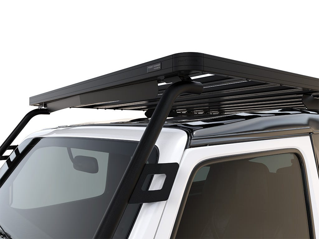 Sistemul de montaj Front Runner Jeep Extreme este fixat de bara de protecție la răsturnare cu suporturi prindere centrale și spate.