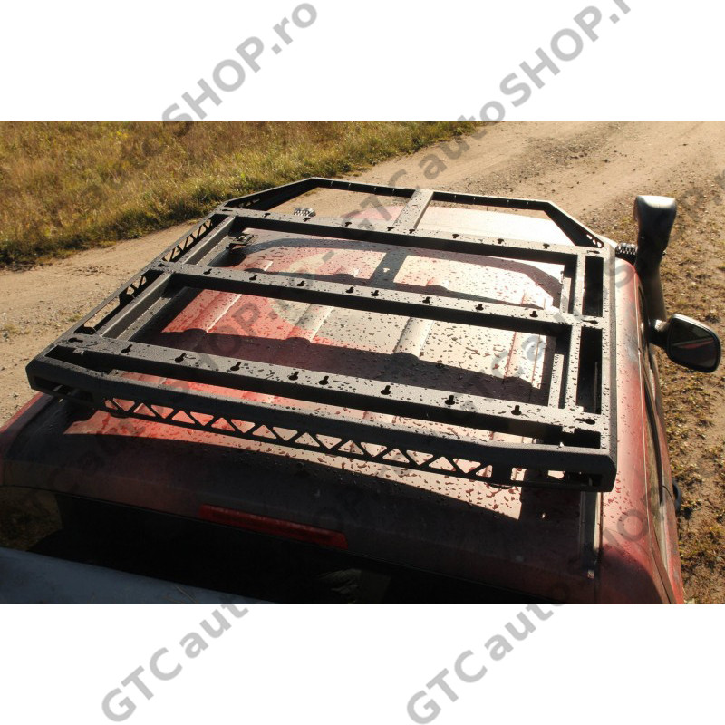 Platforma portbagajului se fixeaza de barele longitudinale ale hardtop-ului cu 12 suruburi. Portbagajul se poate ajusta prin fantele suruburilor in pozitie verticala astfel incat sa vina la nivelul portbagajului de plafon. Suprafata superioara este plana ceea ce permite montarea corturilor pe portbagaj. De asemenea pe traverse sunt prezente orificii pentru montarea plaselor de bagaje sau a altor accesorii.
