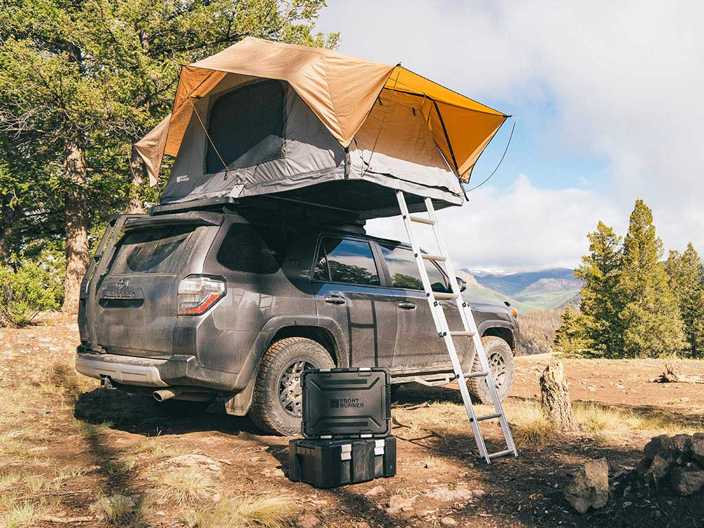 Șinele pentru picioare specifice vehiculului au deschideri pentru depozitarea echipamentelor compatibile sub portbagaj, cum ar fi mesele Front Runner.