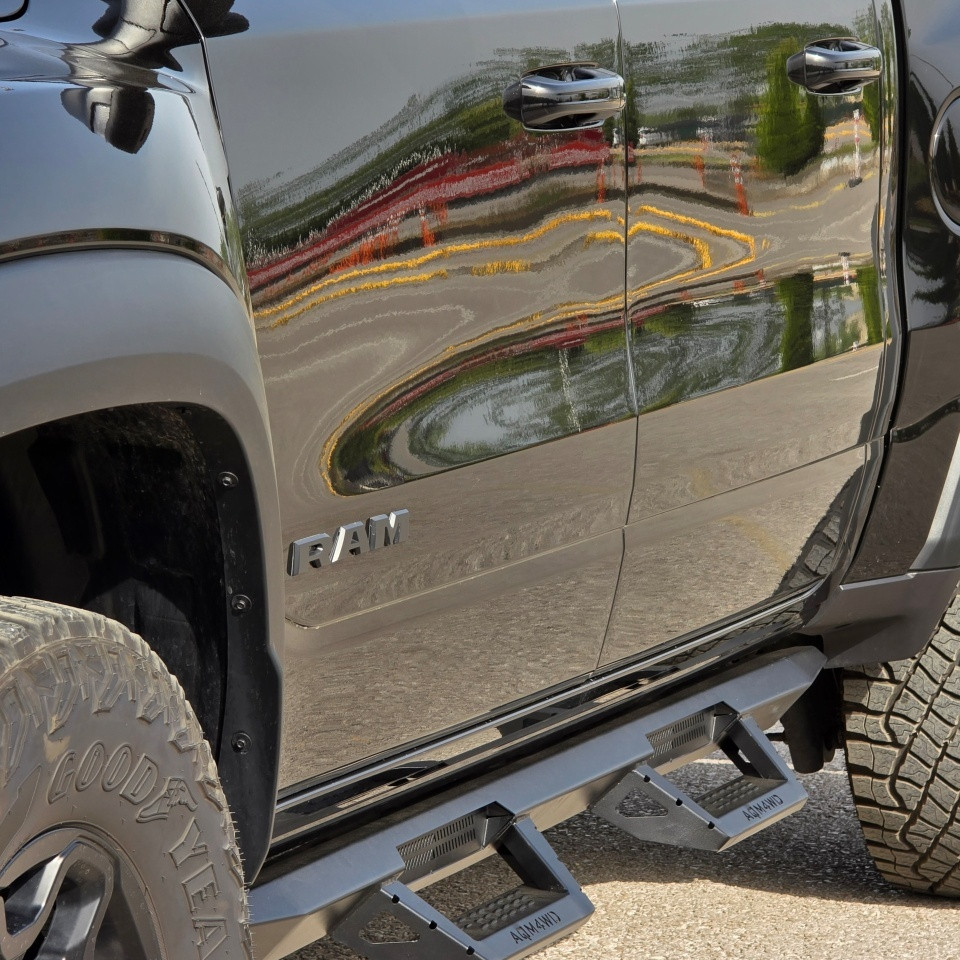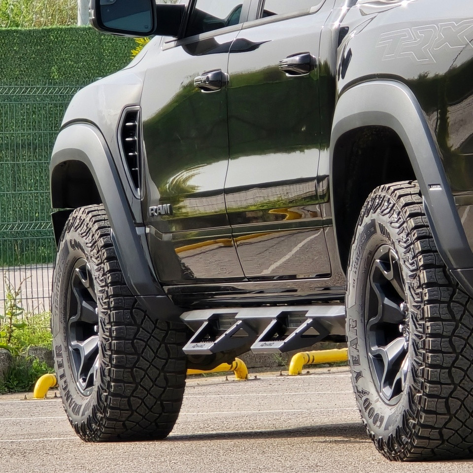 AQM4WD T32 vine cu dimensiuni și finisaje perfect adaptate pick-up-ului tău, asigurându-se că se integrează perfect în designul acestuia. Cu un design ergonomic și un profil estetic, pragurile laterale nu numai că oferă o cale convenabilă pentru a accesa cabina, dar și adaugă o notă de eleganță la fiecare călătorie.