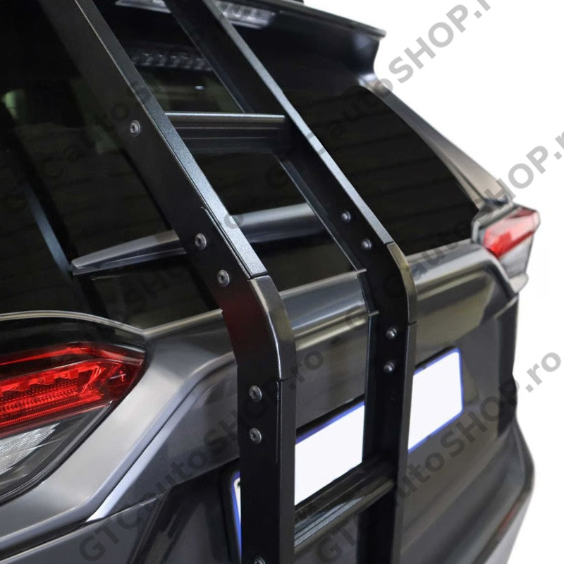 O scara cu patru trepte pentru hayonul din spate al Toyota Rav4 generatia a 5-a, care permite accesul la bagajele sau echipamentul sportiv aflat pe portbagajul de plafon.