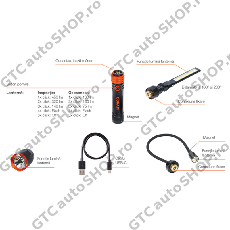 – Lumina de inspectie multifunctionala, cu o varietate de optiuni pentru directionarea luminii in zone inaccesibile