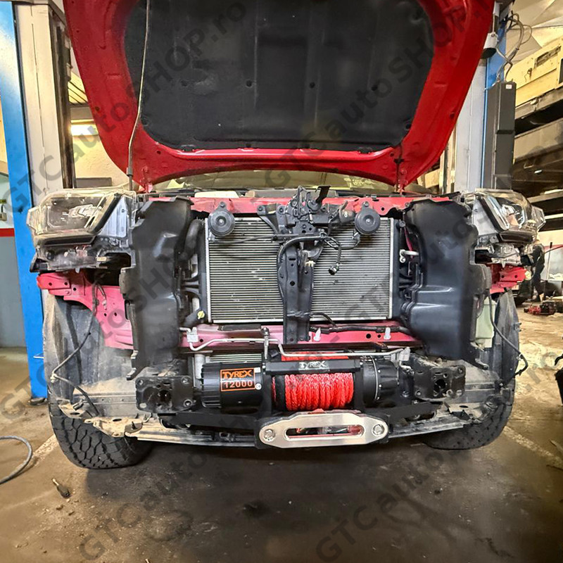 Se va executa o decupare a barei masinii, pentru a se putea monta suportul cu role sau fanta de aluminiu / otel a troliului. Se va reloca suportul pentru numarul de inmatriculare.