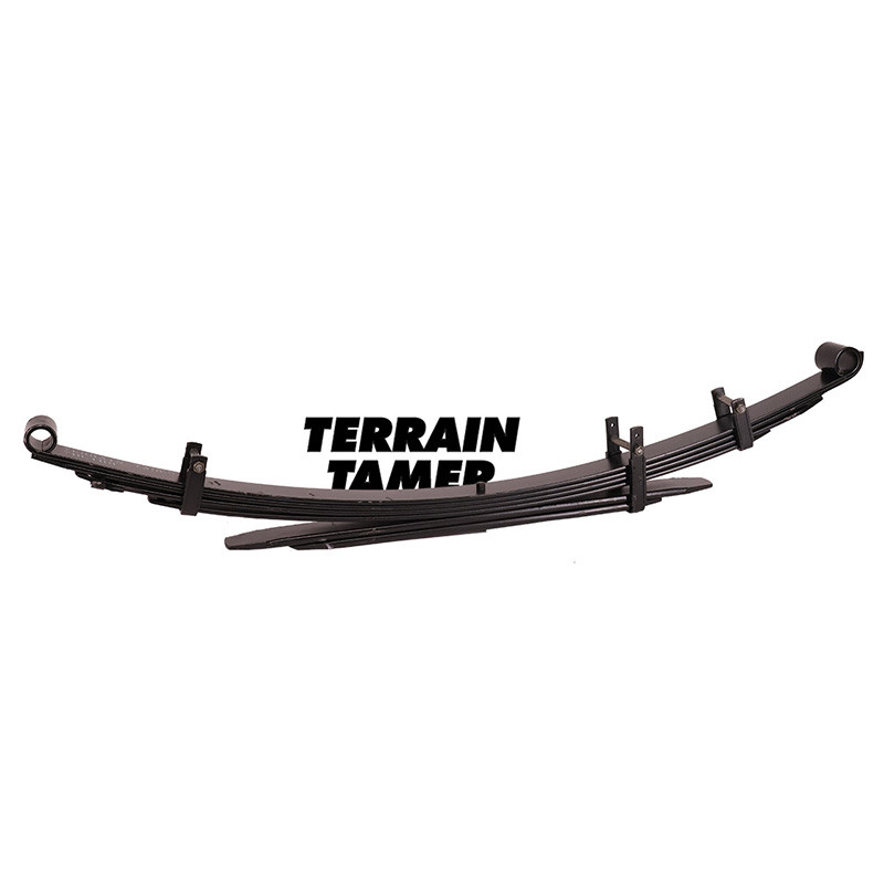 Arcurile lamelare cu foi Terrain Tamer sunt de calitate foarte buna si sunt proiectate sa lucreze optim cu restul componentelor kiturilor de suspensie Terrain Tamer. Sunt disponibile arcuri cu foi cu diverse duritati, pentru incarcari suplimentare constante diferite. Accesorii complementare arcuri foi: bucsi, bride U si cercei/pini gresabili. Arcurile lamelare au pastile antifrictiune intre foi, din poliuretan, pentru a reduce zgomotul ce poate apare in functionare.