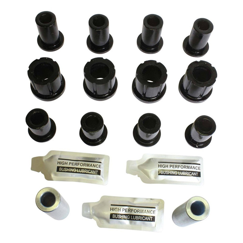 Bucsele Terrain Tamer Pro sunt din Elastomer sintetic, care combina elasticitatea cauciucului cu rezistenta bucselor sintetice. Sunt mai rezistente decat poliuretanul, mai ales in zone cu umiditate ridicata. Compusul elastomer sintetic solid păstrează forma și memoria și maximizează flexibilitatea. Rezistent la uleiuri, substanțe chimice și intemperii. La montare se foloseste vaselina speciala livrata in kitul de bucse!