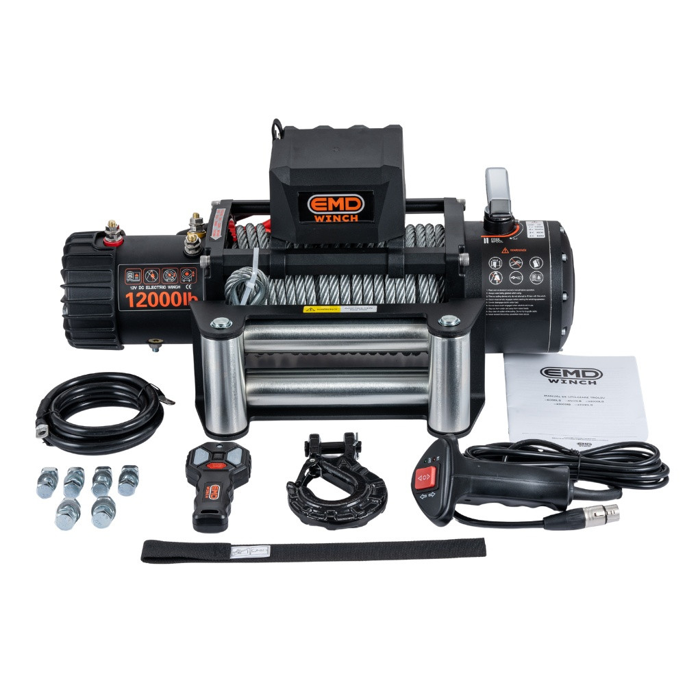Troliu electric auto EMD Winch 12000lbs (5443kg), 12V, cablu otel, 26m, raport 265:1