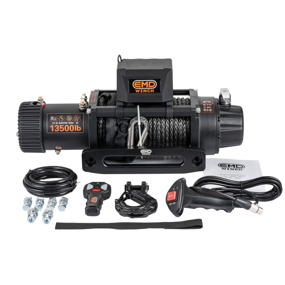 Troliu electric auto EMD Winch 13500lbs (6123kg), 12V, cablu sintetic, 25m, raport 150:1